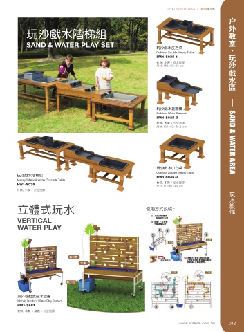 材质:PE 板 + 木製 + 安全塑膠 立体式玩水 使用方式說明 :
