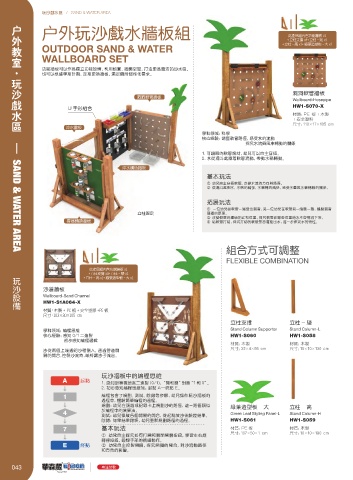 功能牆板可以作为独立功能设备,利用地面、 牆面空间,打造更为灵活的沙水区。