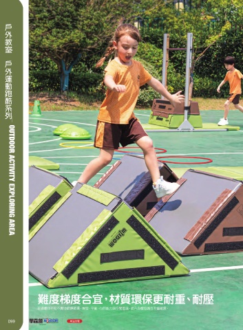 戶外運動跑酷系列 / OUTDOOR ACTIVITY EXPLORING AREA 戶外教室 . 戶外運動 跑酷系列 — OUTDOOR ACTIVITY EXPLORING AREA 難度梯度合宜,材質環保更耐重、耐壓 在遊戲中不知不覺地鍛鍊敏捷、爆發、平衡、心肺能力與空間意識,提升身體協調性和靈敏度。 099 专注幼教