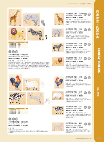 题,在幼儿玩耍的过程中帮助其认识、学习和记忆动物。通过这套拼图,幼儿 简单的、容易操作的小把手动物拼图不仅可以