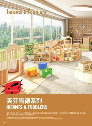 專為 2 歲專班、托育、托兒、小班等提供的一種安全穩固、自然舒適當的空間佈局選擇, 貼心的抓扶設計、圓厚的邊條防護,適合的櫃