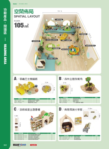 A / 萌趣巴士阅读区 B / 森林主题放鬆角