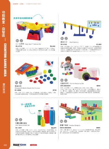 N1-0779 $2,080 材質:安全塑膠。尺寸:長67cm。天平×1、砝碼片×20。利用重量概念學 科學天秤 Junior balance 內含平衡桿1個、秤盤2個、砝碼6個。打磨圓潤、配色舒服。幼兒可以通