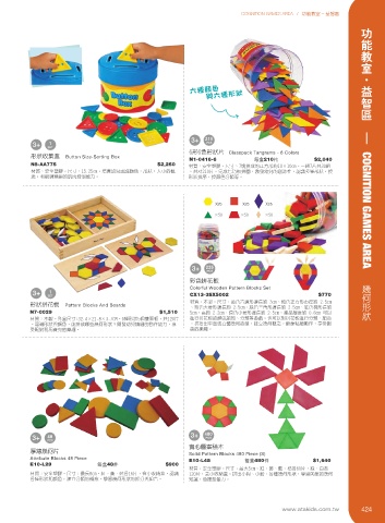 N1-1773 $2,080 N7-528 $1,970 形狀拼花板 Pattern Blocks And Boards 材質:木製。尺寸:黃色六邊形邊長約 3cm、橙色正方形直徑約 2.5cm