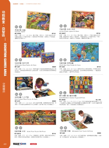 地板拼圖-非洲 Safari Floor Puzzle 100-Piece 地板拼圖-恐龍 Dinosaurs Floor Puzzle 48-Piece N7-3747 $630 N7-3724 $630 材質:木製。尺寸:30×22×2cm。包括八塊易握動