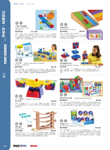 材質:泡棉。30個不同形狀泡棉積木、浮板19cm。利用各種泡棉積木放在 N1-LSP9162-CCC $2,390 材質:安全塑膠。共59件。STEAM課程的好幫手,學習因果、力和運動,建構