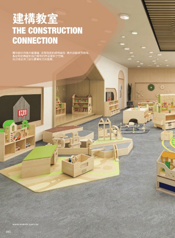 建构教室 THE CONSTRUCTION CONNECTION 独特设计的积木整理柜、造型别致的桌椅组合、积木游戏桌等设备, 为幼儿建构属於自己独特的作品提供了空间, 充分地支持了幼儿建构能力的发展。 www.atakids.com.tw 495