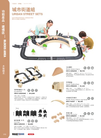 場景式的街道係列。 另也可配圖冊中的交通識別組、立體商店組、 3+