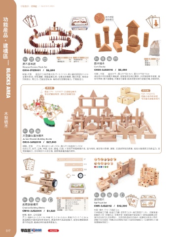 包含正方,长方,三角,半圆,弧形,圆柱,四通,Y 型等不同种类积木块,进行堆高、数形等分对称、建筑、交通係列等的搭建。能充分发挥孩子的创造力,空