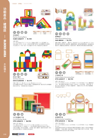 可以認知大小、形狀、色彩,可以堆疊、嵌入等方式建造拼出各種形狀。 种形状,表面加以多样纹理,可认知形状、颜色的同时刺激幼儿感官发展。