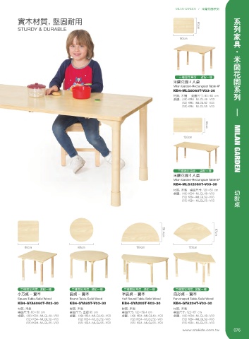 三种固定高度, 选配一种 MILAN GARDEN 幼教桌
