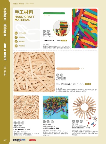 数量超多的木色火柴棒用途多样、尺寸一致,是 蓝色和绿色等颜色,是手工製作、建构搭建及计 材料进行装饰,促进想像力,培养发现美、创造