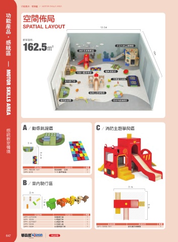 A / 动感跳跃区 C / 消防主题攀爬区