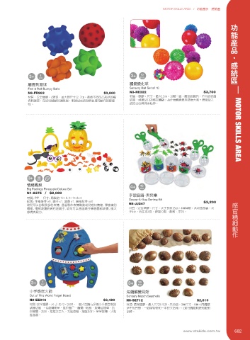 N1-5559 $990 N1-5072 $2,520 覺刺激球,在幼兒拋擲和彈跳間,刺激感官的發展並增加動作的敏捷 紋路,刺激幼兒的感官體驗。為什麼觸覺差異這麼大呢?增強幼兒 訓練功能 ,有旋轉衛星、推拉窗戶、觸覺凸起點、旋轉登陸車、按 造型的貝殼、一個儲物袋和一本原文指南。可進行觸感刺激和配對