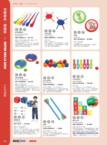 玩飞盘、也可玩魔球踢毽子。一物多玩,锻炼 訓練。 訓練肢體基本動作、眼睛追蹤能力、投擲 位清晰的保齡球,可發展滾球技能,鍛鍊手腕及